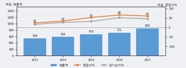 최근 3년간의 실적을 살펴보면 안정적 성장세를 보이고 있다. 최근 3년간 매출로 볼 때 매년 꾸준히 증가하고 있고 그 증가폭도 확대되고 있다.