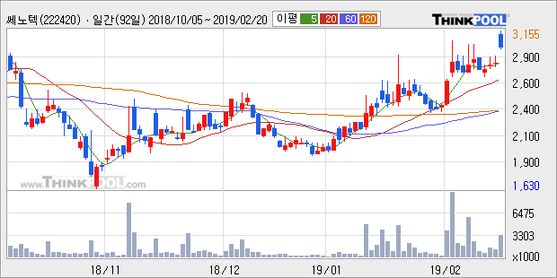 쎄노텍은 2017년 매출액 405억원과 영업이익 41억원을 기록했다. 전년대비 매출은 0.8% 상승했고, 영업이익은 -37.2% 하락했다. 이 회사의 매출액 증감률과 영업이익 증감률은 각각 코스닥 하위 36%, 하위 33%에 해당된다.
