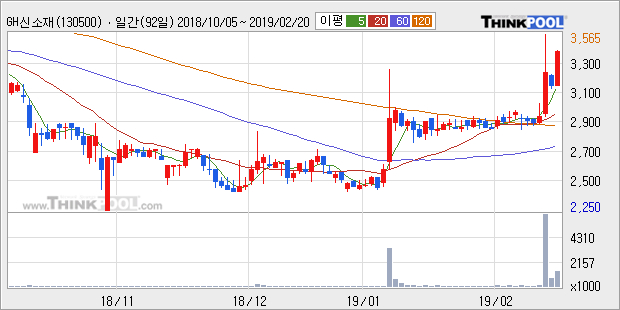 추세선으로 보면 현재 단기·중기 이평선이 정배열 상태로 전형적인 상승세를 보이고 있다. 이 종목의 차트에서 최근에 최근 60일 매물대 돌파, 최근 5일 매물대 돌파 등을 확인할 수 있다