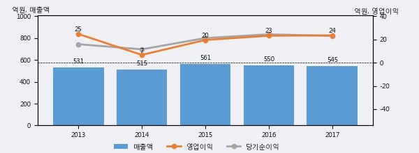 GH신소재의 2017년 매출액은 전년대비 -1.0% 줄어든 545억원이고, 영업이익은 전년대비 1.3% 늘어난 24억원을 기록했다. 이 회사의 매출액 증감률과 영업이익 증감률은 각각 코스닥 하위 34%, 상위 49%에 해당된다.