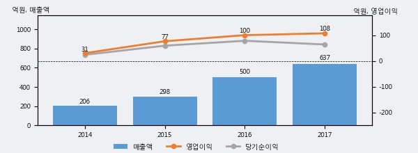 최근 3년간의 실적을 살펴보면 안정적 성장세를 보이고 있다. 최근 3년간 매출로 볼 때 매년 증가하고 있다. 다만 최근에 그 증가폭이 다소 감소하고 있다.