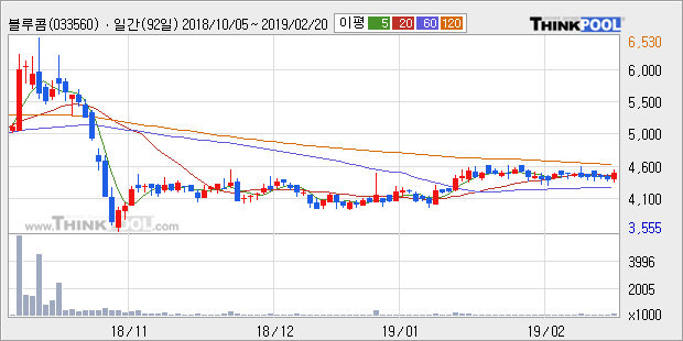 블루콤의 2017년 매출액은 전년대비 -51.2% 줄어든 1166억원이고, 영업이익 역시 전년대비 -57.0% 줄어든 116억원을 기록했다. 이 회사의 매출액 증감률과 영업이익 증감률은 각각 코스닥 하위 2%, 하위 25%에 해당된다.