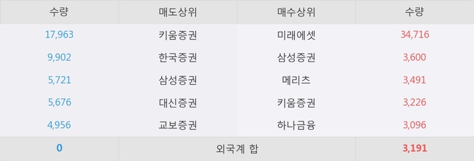 거래원 동향은 미래에셋, 삼성증권, 메리츠 등이 매수 상위 목록에 나타나고 있다.