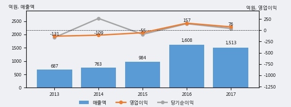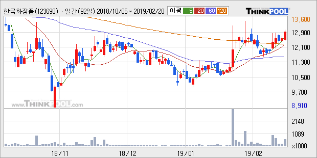 한국화장품의 2017년 매출액은 전년대비 -5.9% 줄어든 1513억원이고, 영업이익 역시 전년대비 -51.7% 줄어든 76억원을 기록했다. 이 회사의 매출액 증감률과 영업이익 증감률은 각각 코스피 하위 17%, 하위 18%에 해당된다.