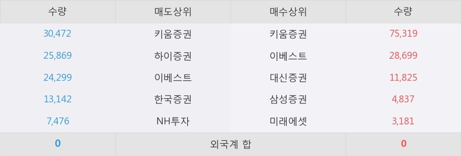 아직까지 외국계 증권사 창구를 통한 매매는 발생하지 않고 있다. 그리고 이 시간 이베스트가 매수창구상위에 올라있는 종목은 이 종목 이외에도 금호전기, 동국실업 등이 있다.