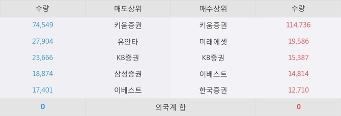 이 시각 주요 거래원은 미래에셋, 키움증권, KB증권 등이 매수 상위 창구에 자리하고 있다.
