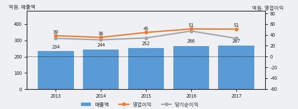 최근 3년간의 실적을 살펴보면 안정적 성장세를 보이고 있다. 최근 3년간 매출로 볼 때 매년 꾸준히 증가하고 있다. 다만 최근에 그 증가폭이 다소 감소하고 있다.