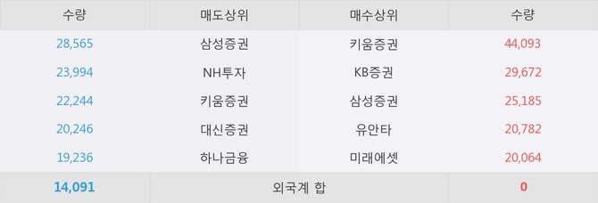 거래원 동향은 삼성증권, 미래에셋 등이 매수 상위 목록에 나타나고 있다.