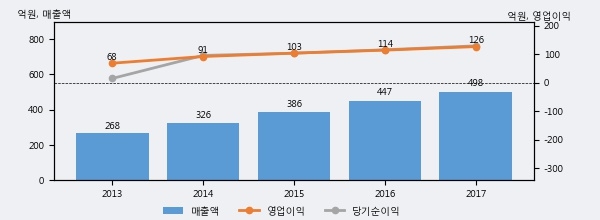 최근 3년간의 실적을 살펴보면 안정적 성장세를 보이고 있다. 최근 3년간 매출로 볼 때 매년 꾸준히 증가하고 있다. 다만 최근에 그 증가폭이 다소 감소하고 있다.