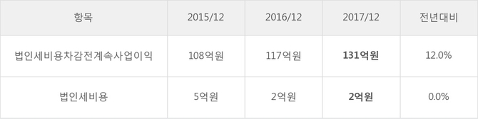 디에이치피코리아의 지난 3년 동안 법인세 납부액 추이를 보면 각각 5억원, 2억원, 2억원을 기록하고 있다.