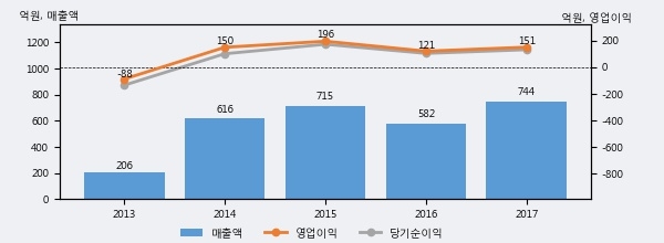 최근 실적을 살펴보면 2017년 매출액이 최근 5년 중 가장 높은 실적을 기록했음을 알 수 있다. 이전 최고 실적이었던 2015년 보다도 4.0%(28억 9천만원) 늘어난 것으로 나타났다.