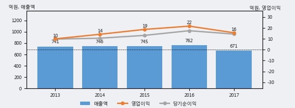 PN풍년의 2017년 매출액은 671억으로 전년대비 -11.9% 하락했고, 영업이익 역시 16억으로 전년대비 -28.1% 하락했다. 이 회사의 매출액 증감률과 영업이익 증감률은 각각 코스닥 하위 17%, 하위 36%에 해당된다.