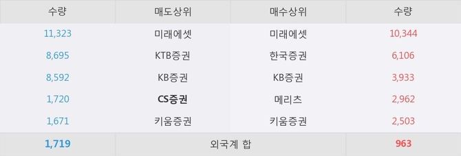 거래원 동향은 CS증권, 미래에셋이 매도 상위 목록에 나타나고 있다.