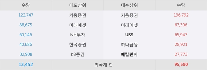 거래원 동향은 UBS, 메릴린치, 미래에셋 등이 매수 상위 목록에 위치하고 있다.