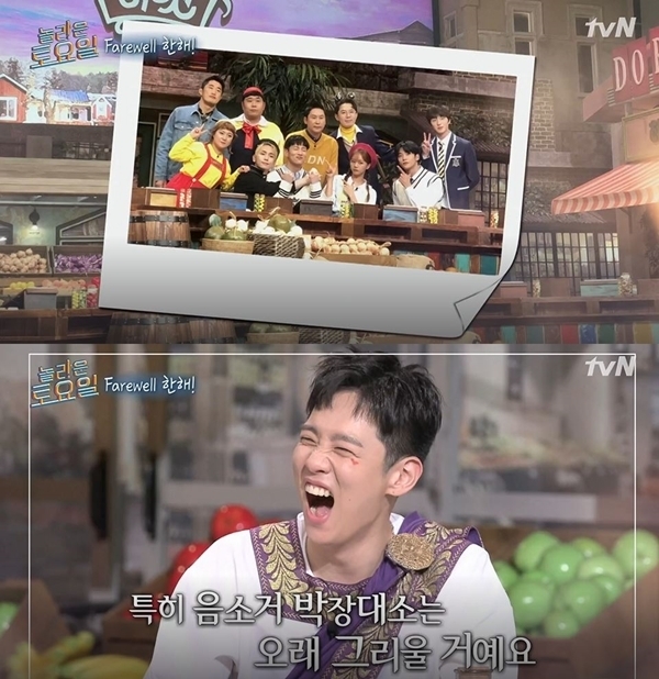 이날 그가 모두와 함께 마지막 사진을 찍자 스크린서 그에게 작별인사를 전하는 멤버들의 모습이 재생되기 시작했다.