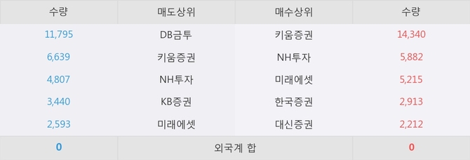 거래원 동향은 NH투자, 미래에셋 등이 매도 상위 목록에 나타나고 있다.