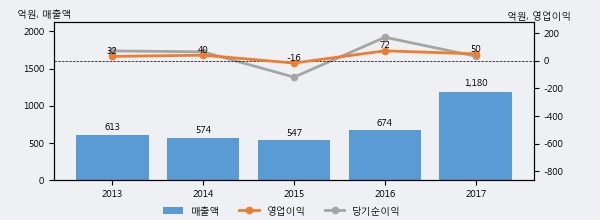 최근 실적을 살펴보면 2017년 매출액이 최근 5년 중 가장 높은 실적을 기록했음을 알 수 있다. 이전 최고 실적이었던 2016년 보다도 75.0%(505억 9천만원) 늘어난 것으로 나타났다.
