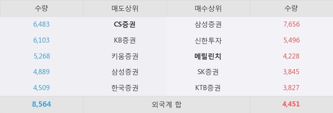 거래원 동향은 메릴린치, 삼성증권이 매수 상위 목록에 나타나고 있다. 한편, 매도 창구 상위에는 CS증권이 눈에 띄고 있다.