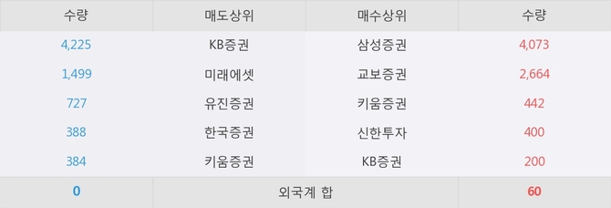 이 시각 주요 거래원은 삼성증권, 교보증권, 키움증권 등이 매수 상위 창구에 자리하고 있다.