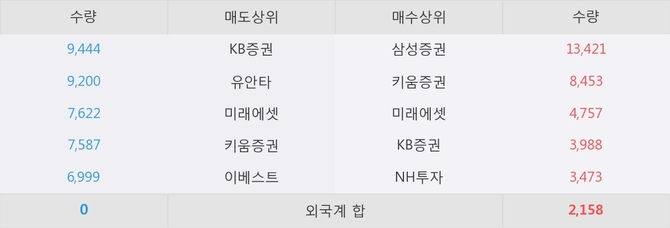 거래원 동향은 삼성증권, 미래에셋, NH투자 등이 매수 상위 목록에 나타나고 있다.