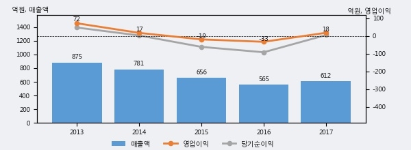 피델릭스의 2017년 매출액은 전년대비 8.3% 늘어난 612억원이고, 영업이익은 흑자전환해서 18억원을 기록했다. 이 회사의 매출액 증감률과 영업이익 증감률은 각각 코스닥 상위 46%, 상위 11%에 해당된다.