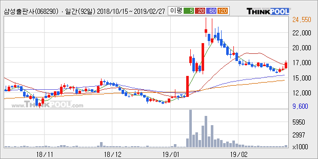 삼성출판사는 2017년 매출액 1766억원과 영업이익 110억원을 기록했다. 전년대비 매출은 8.1% 상승했고, 영업이익은 -10.0% 하락했다. 이 회사의 매출액 증감률과 영업이익 증감률은 각각 코스피 상위 42%, 하위 43%에 해당된다.