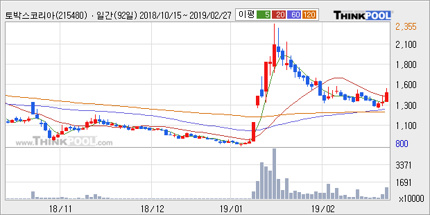 토박스코리아의 2017년 매출액은 305억으로 전년대비 28.4% 상승했고, 영업이익 또한 45억으로 전년대비 11.8% 상승했다. 이 회사의 매출액 증감률과 영업이익 증감률은 각각 코스닥 상위 22%, 상위 46%에 해당된다.