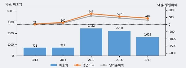 웹젠은 2017년 매출액 1663억원과 영업이익 440억원을 기록했다. 전년대비 매출은 -24.4%, 영업이익은 -23.0% 각각 하락했다. 이 회사의 매출액 증감률과 영업이익 증감률은 각각 코스닥 하위 8%, 하위 38%에 해당된다.