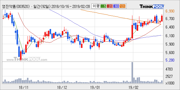영진약품은 2017년 매출액 1950억원과 영업이익 30억원을 기록했다. 전년대비 매출은 1.0% 상승했고, 영업이익은 -44.4% 하락했다. 이 회사의 매출액 증감률과 영업이익 증감률은 각각 코스피 하위 32%, 하위 22%에 해당된다.