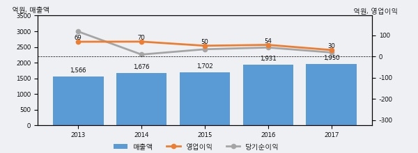 최근 3년간의 실적을 살펴보면 안정적 성장세를 보이고 있다. 최근 3년간 매출로 볼 때 매년 꾸준히 증가하고 있다. 다만 최근에 그 증가폭이 다소 감소하고 있다.