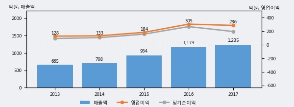 최근 3년간의 실적을 살펴보면 안정적 성장세를 보이고 있다. 최근 3년간 매출로 볼 때 매년 꾸준히 증가하고 있다. 다만 최근에 그 증가폭이 다소 감소하고 있다.