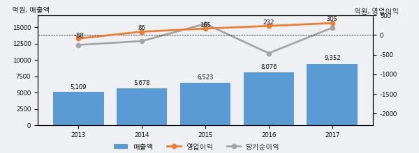 최근 3년간의 실적을 살펴보면 안정적 성장세를 보이고 있다. 최근 3년간 매출로 볼 때 매년 꾸준히 증가하고 있다. 다만 최근에 그 증가폭이 다소 감소하고 있다.