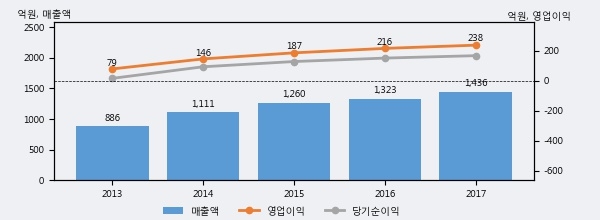 최근 3년간의 실적을 살펴보면 안정적 성장세를 보이고 있다. 최근 3년간 매출로 볼 때 매년 꾸준히 증가하고 있고 그 증가폭도 확대되고 있다.