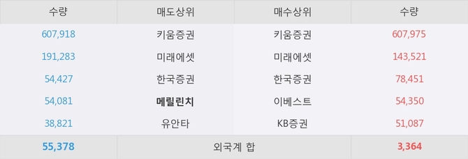 거래원 동향은 메릴린치, 미래에셋이 매도 상위 목록에 나타나고 있다.
