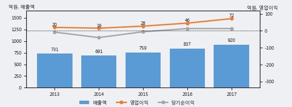 최근 3년간의 실적을 살펴보면 안정적 성장세를 보이고 있다. 최근 3년간 매출로 볼 때 매년 증가하고 있다. 다만 최근에 그 증가폭이 다소 감소하고 있다.