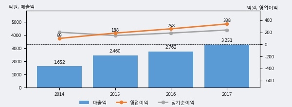 최근 3년간의 실적을 살펴보면 안정적 성장세를 보이고 있다. 최근 3년간 매출로 볼 때 매년 증가하고 있고 그 증가폭도 확대되고 있다.