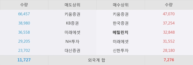 거래원 동향은 미래에셋, NH투자 등이 매도 상위 목록에 나타나고 있다. 한편, 매수 창구 상위에는 메릴린치가 눈에 띄고 있다.