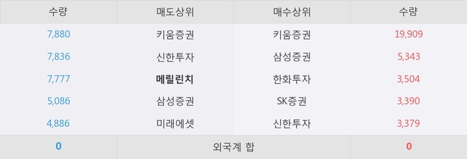 아직까지 외국계 증권사 창구를 통한 매매는 발생하지 않고 있다. 그리고 이 시간 메릴린치가 매도창구상위에 올라있는 종목은 이 종목 이외에도 에어부산, 유진기업 등이 있다.