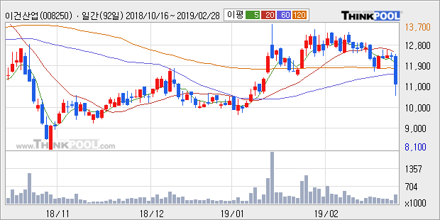 이건산업의 2017년 매출액은 2987억으로 전년대비 2.9% 상승했고, 영업이익은 160억으로 전년대비 -10.2% 하락했다. 이 회사의 매출액 증감률과 영업이익 증감률은 각각 코스피 하위 38%, 하위 43%에 해당된다.