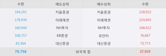 거래원 동향은 미래에셋, NH투자 등이 매도 상위 목록에 나타나고 있다.