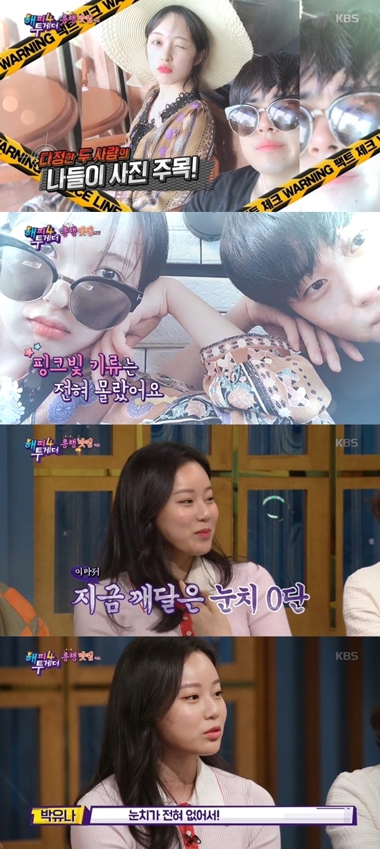 28일 방송된 KBS '해피투게더4'에서 박유나는 'SKY캐슬'에 함께 출연한 김보라와 조병규가 열애를 공개한 것에 대한 질문을 받았다.