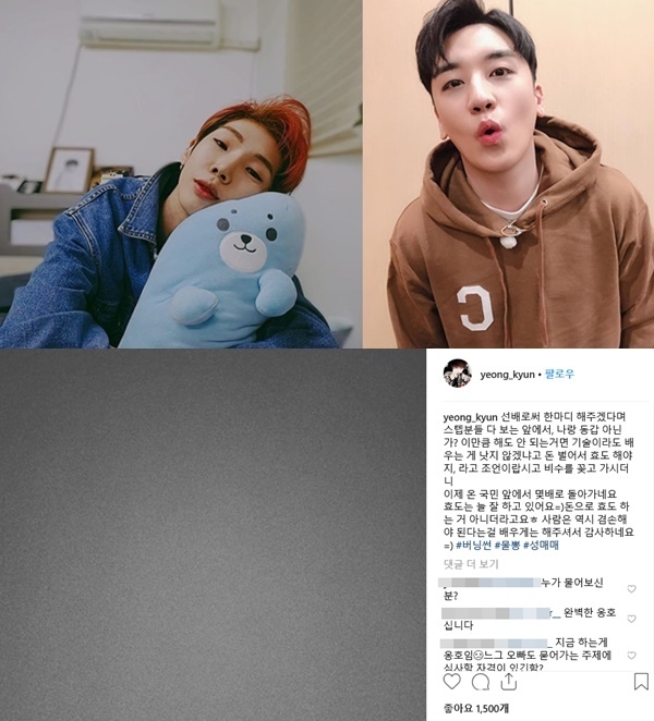 1일 영균은 자신의 SNS에 최근 불거진 '버닝썬' 게이트를 해시태그한 채 익명의 누군가를 향한 폭로글을 게시해 이목을 모았다.