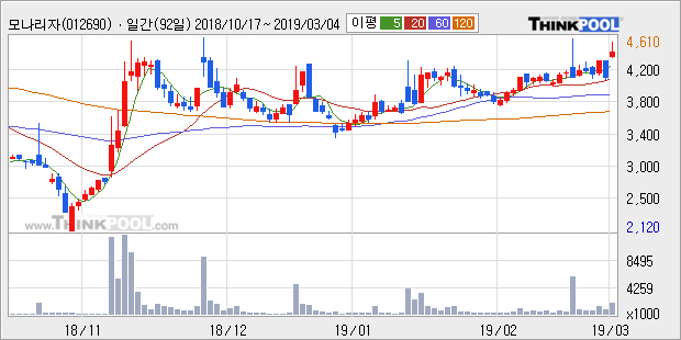 추세선으로 보면 현재 단기·중기 이평선이 정배열 상태로 전형적인 상승세를 보이고 있다. 최근 이 종목의 차트에서 삼선전환도(양전환), 최근 60일 매물대 돌파, 주가 5MA 상향돌파 등의 특이사항이 발생했다.