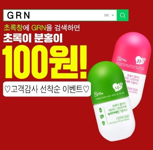 한편, 본 프로모션은 분홍이 초록이를 사랑해준 고객들의 성원에 고마움을 전하기 위해 기획된 행사다. 참여 방법은 네이버에서grn 키워드 검색후 별도 생성되는 배너 클릭을 통해 접속해야만 참여가 가능하며 온라인 몰 회원만 가능하다.