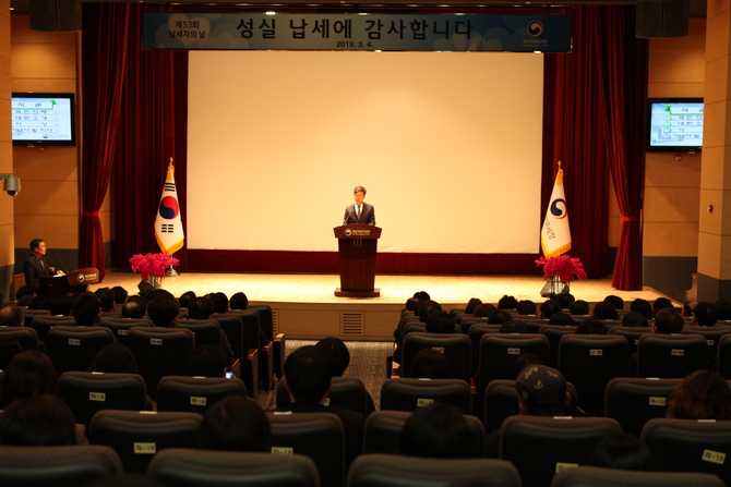 부산청은 이날 오전 11시 청사 1층 대강당에서 각 수상자와 초청인사 174명이 참석한 가운데 제53회 납세자의 날 기념식을 열었다.