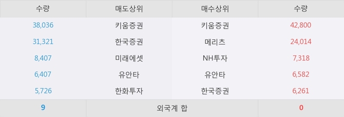 거래원 동향은 메리츠, NH투자 등이 매수 상위 목록에 나타나고 있다.