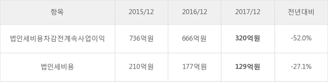 DRB동일의 지난 3년 동안 법인세 납부액 추이를 보면 각각 210억원, 177억원, 129억원으로 매년 감소하고 있다.