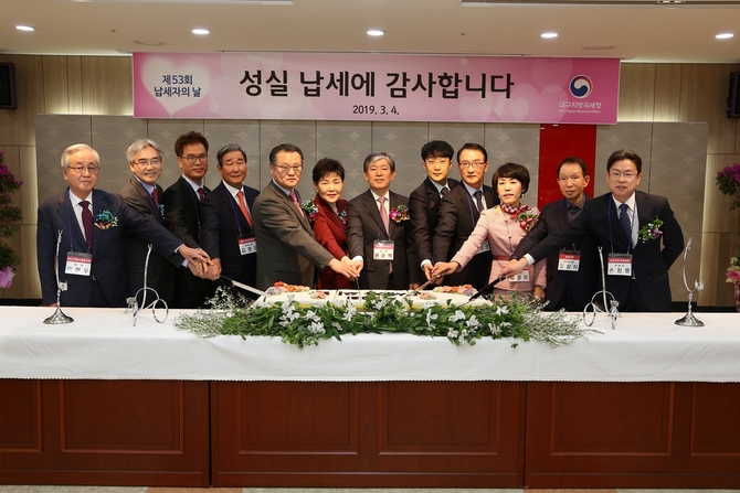 (조세금융신문=고승주 기자) 대구지방국세청이 4일 오전 10시 정부대구지방합동청사 2층 대강당에서 모범납세자와 국세공무원 등 260여명이 참석한 가운데 ‘제53회 납세자의 날’ 기념식을 열었다.