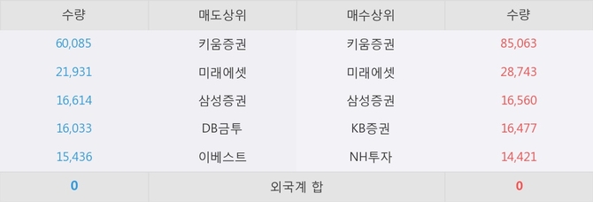 거래원 동향은 미래에셋, 삼성증권, NH투자 등이 매수 상위 목록에 나타나고 있다.