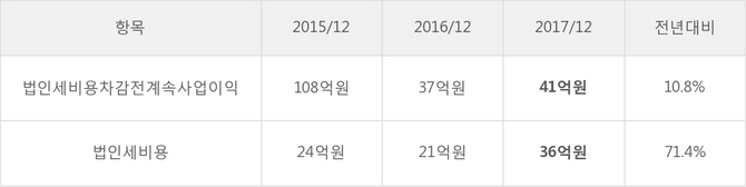 에스와이패널의 지난 3년 동안 법인세 납부액 추이를 보면 2016년에는 감소했으나, 작년에는 36억원으로 크게 증가했다.